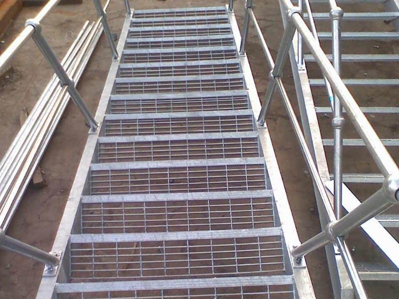 踏步板用作工業(yè)平臺,梯踏板,扶欄,通道地板,鐵路橋側(cè)道,高空塔架平臺,排水溝蓋,井蓋,道路隔柵,在停車場,機(jī)關(guān)、學(xué)校、工廠、企事業(yè)、運動場、花園別墅的廣泛應(yīng)用。