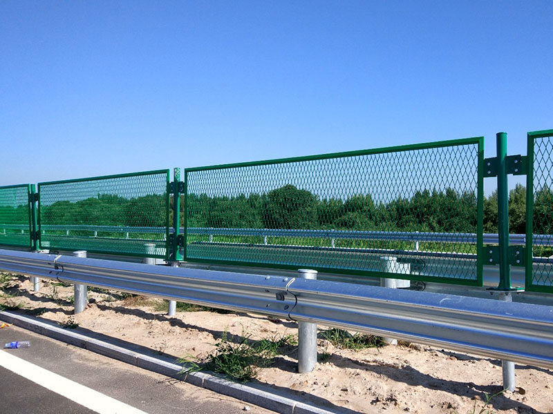 公路防眩網采用金屬鋼板為原材料,經過沖壓設備進行沖壓、拉伸形成的網狀絲網產品。獨特的拉伸結構,隆起的梗部,能夠改變光線的方向,使對面燈光一部分被阻擋,一部分被改變方向,只有少數部分被傳遞到人的眼睛里,可有效減輕夜間行車時對方來車的強烈燈光造成的炫目感,避免夜間行車受對向車輛射出光而影響視覺造成的交通事故。公路護欄網也是高速公路上常見的防護產品,與防眩網搭配使用。